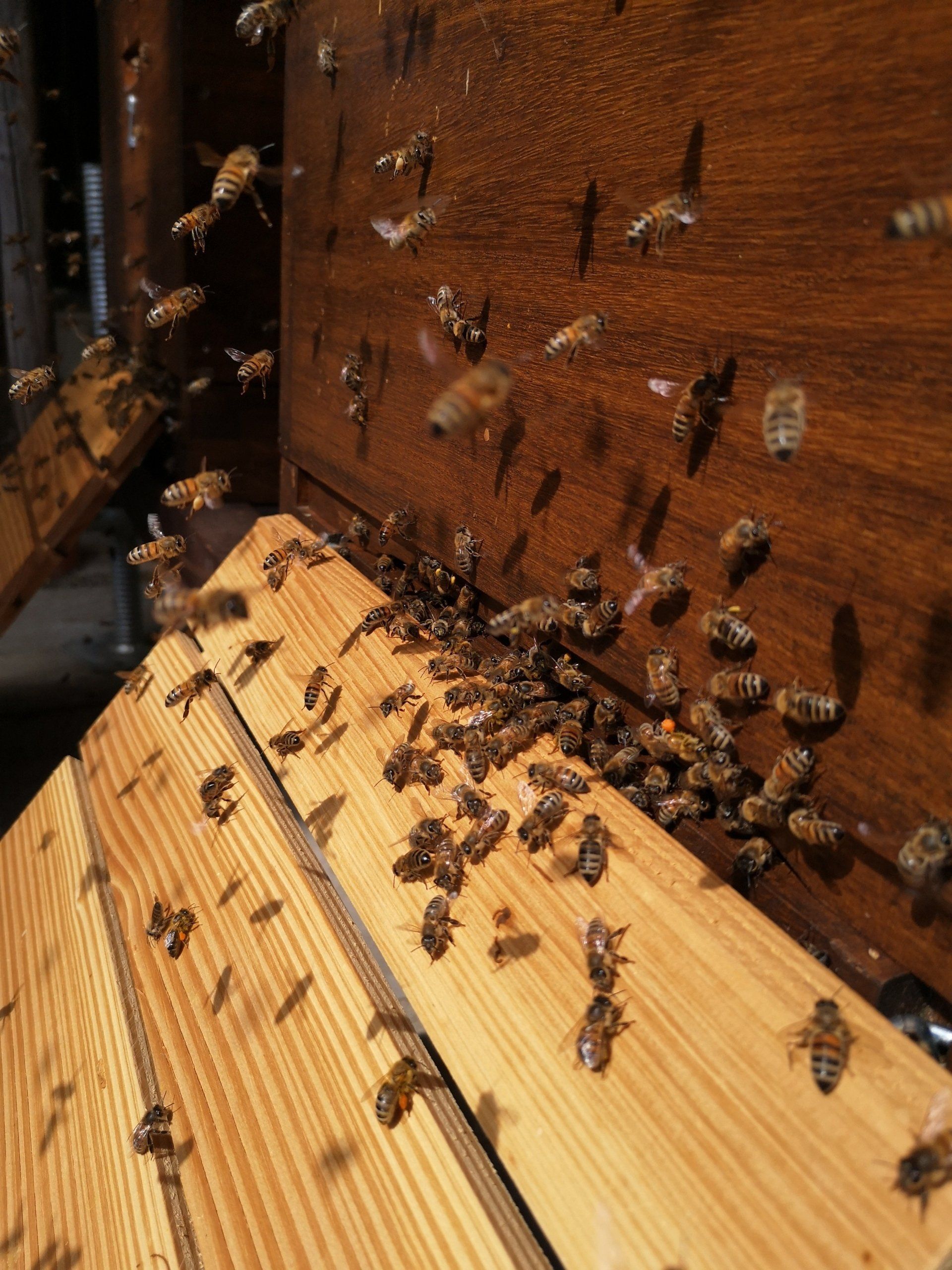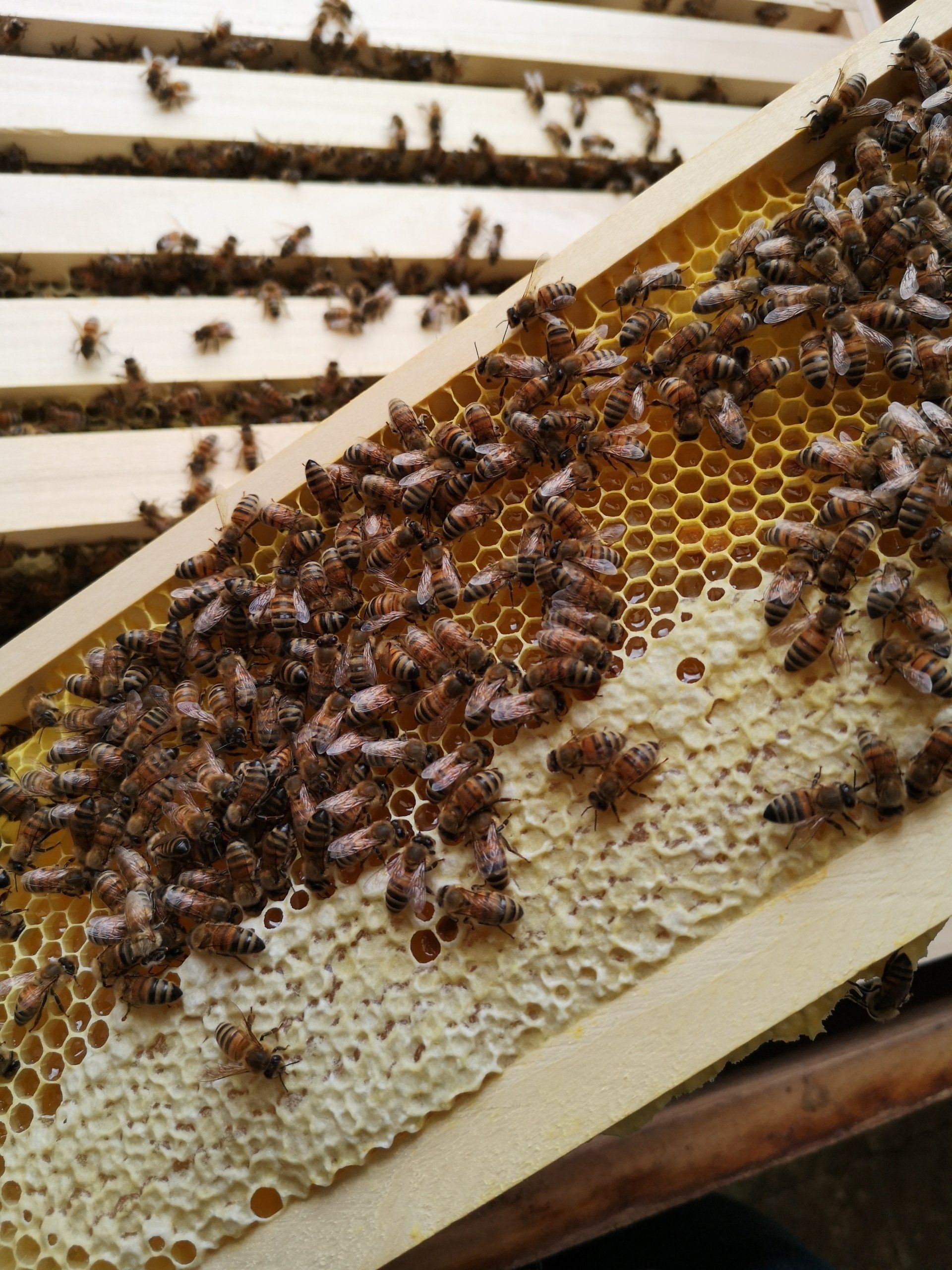 An erster Stelle steht für uns Wohlergehen und Gesundheit unserer Bienenvölker, daher halten wir unsere Bienen in Großraum-Holzbeuten...